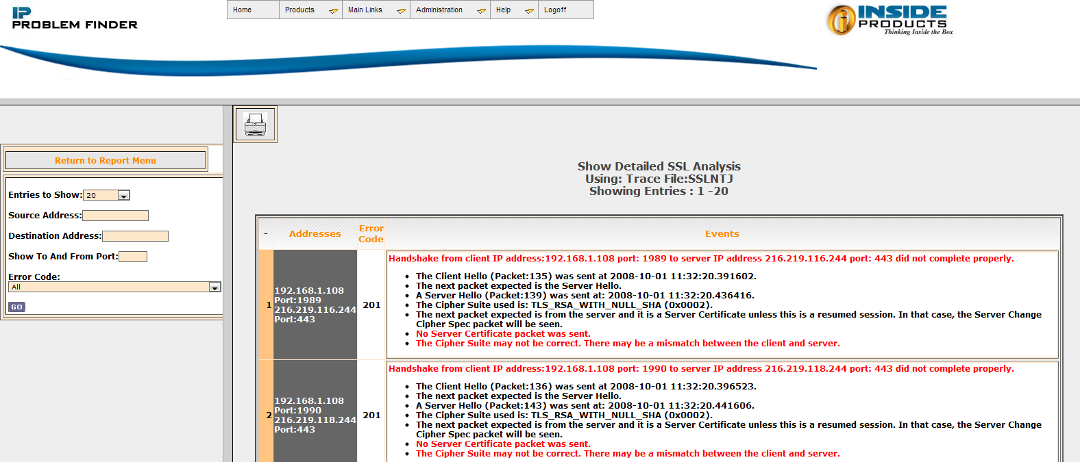 is being widely implemented to protect TCP application traffic. SSL Problem Finder will help you diagnose