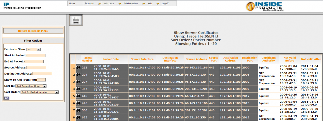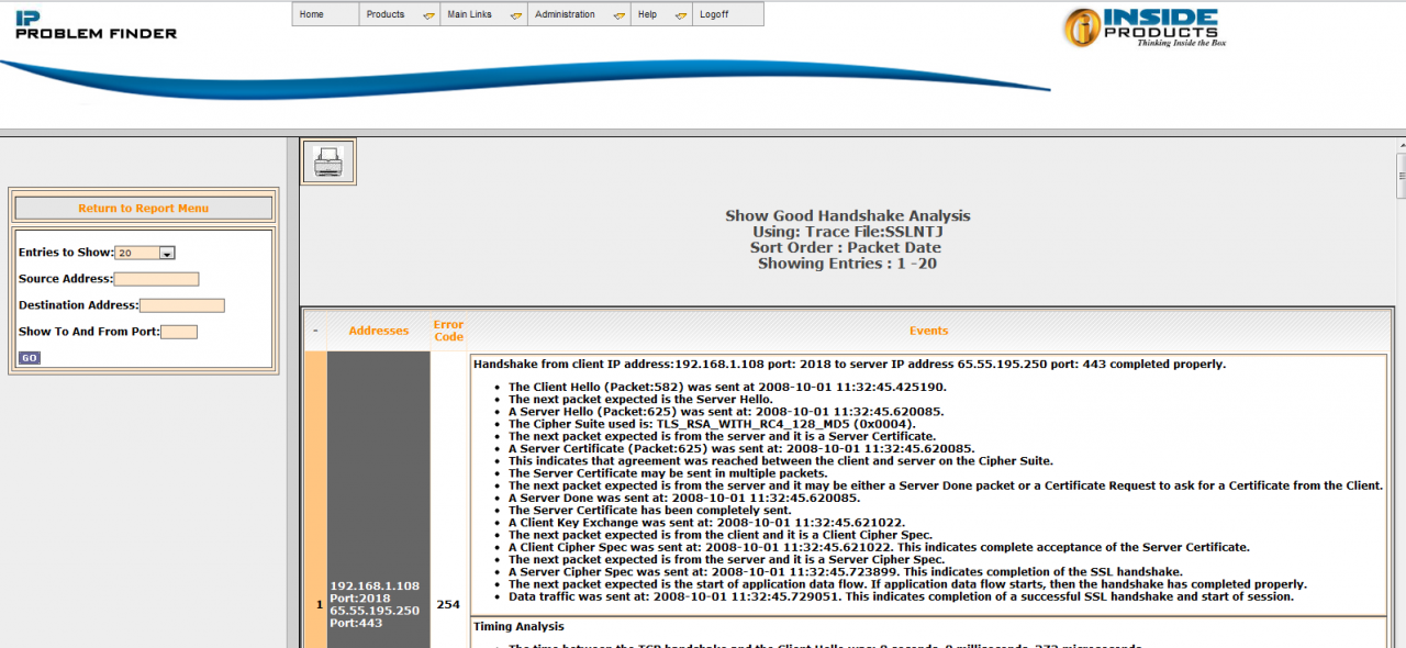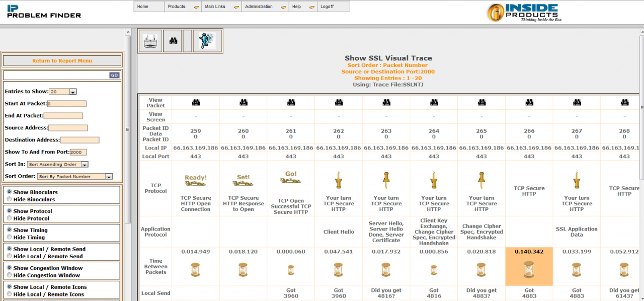 Inside ProductsSSL Problem Finder will allow you to decode the traces for SSL or AT-TLS traffic. Secure Sockets Layer (SSL) is widely implemented to protect TCP application traffic. SSL Problem Finder will help you diagnose problems with connection setup and negotiation. You can view problems with certificates, encryption algorithms and much more.